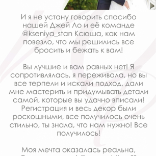Все компании, которые представлены в каталоге, проходят тщательную модерацию: мы не только отслеживаем активность свадебных специалистов, но и проверяем их работы на соответствие эстетике проекта – безупречный стиль и современность.